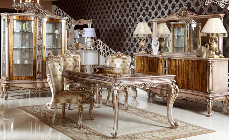 Klasik yemek odası takımları ile uyumlu aksesuarlar kullanabileceğiniz bir dekorasyon sizi ve misafirlerinizi tarihin içinde büyüleyici bir yolculuğa çıkaracak. Dekorasyonda sadece konforu ve rahatlığı değil, şıklığı ve estetiği de sunan lüks tarz ile keyifle vakit geçireceğiniz, samimi bir yemek odasına sahip olabilirsiniz. Misafirlerinizi göz alıcı ve ışıltılı bir yemek odasında ağırlayabilirsiniz.
